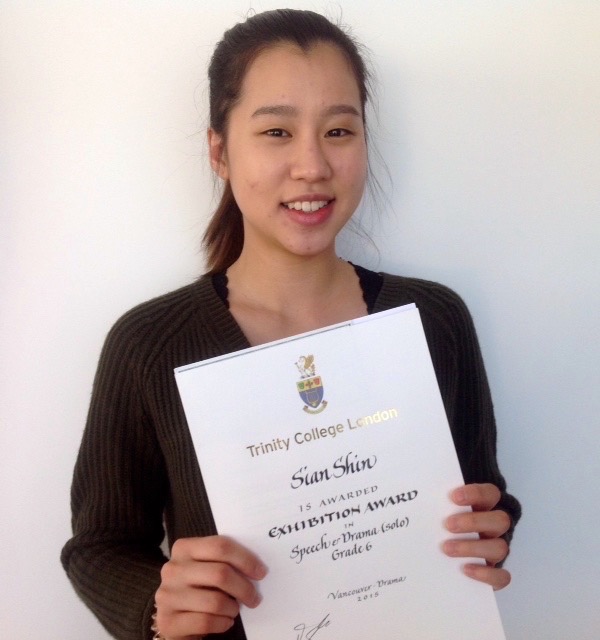 Our warmest congratulations to Sian, who has been selected from all candidates in the Speech and Drama exams 2015 for the Exhibition Prize. Prizes are awarded annually to candidates who have gained the highest distinction marks in a practical examination at Grades 5-8 and Advanced Certificatfor for the Bahamas, West Indies, USA and Canada, one prize for each grade level